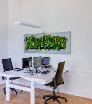 Interior green walls, like indoor plants, are known to improve employee productivity by reducing stress, and filtering the air of germs and harmful office pollutants. They also offer an effective alternative to indoor plants if you have limited floor space.