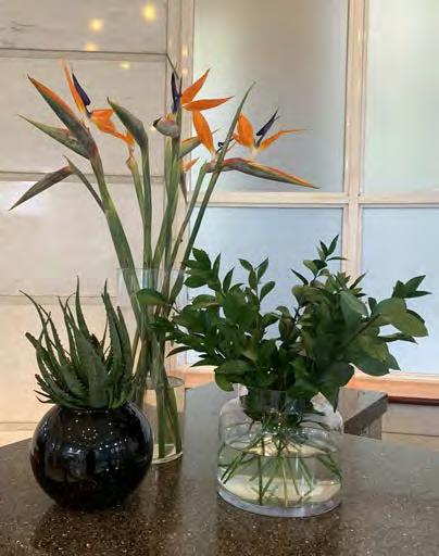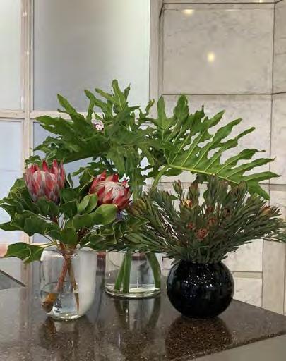 Indigenous blooms such as proteas, strelitzia, agapanthus, various indigenous daisies, aloes, sunflowers as well as a variety of succulents and shapely leaves like delicious monsters, make for a distinctive and beautiful display.