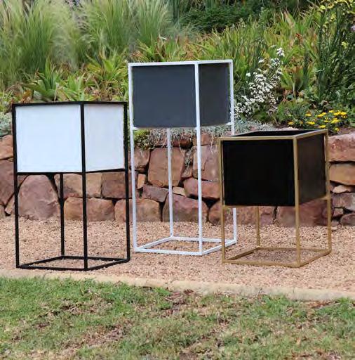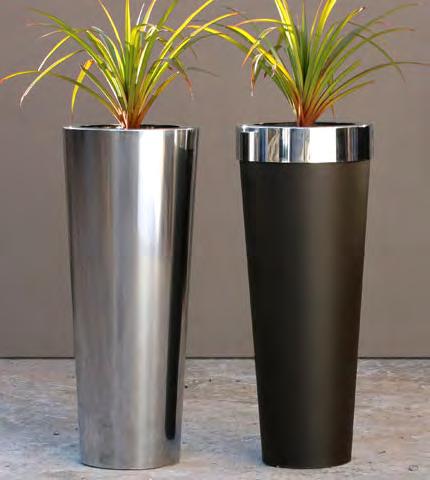 Aluminium and stainless steel are the most commonly used material in the manufacture of these planters. The planters are fabricated by hand in a number of designs, round and square cones, cubes and troughs.