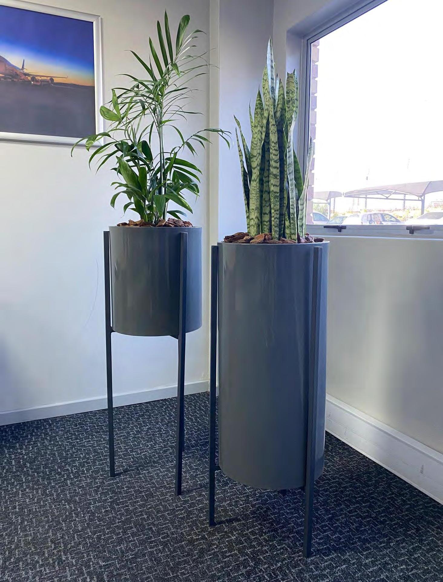Contemporary and sleek, these steel floor-standing planters certainly stand out! We’re seeing a move towards interestingly designed stands to display plants. Imagine a pair of these at your reception area to create a first and lasting impression.