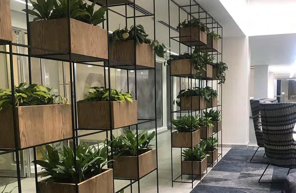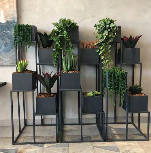 Small table top planters, floor standing units, modular wall units, wall hanging planters, greenwalls, atriums, treescape indoor gardens, traditional flower arrangements, indigenous table top arrangements and a full range of artificial greenery.