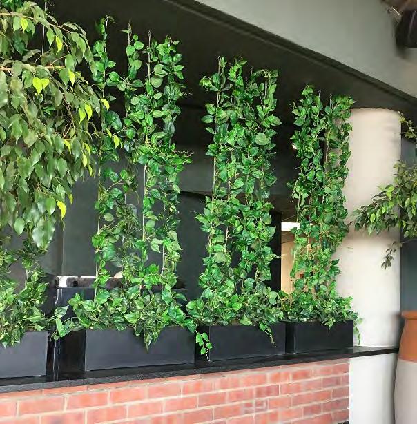 Add green walls & hanging plants to hide unsightly walls and roofs, and enhance or beautify bland areas with artificial plant screening to create privacy.