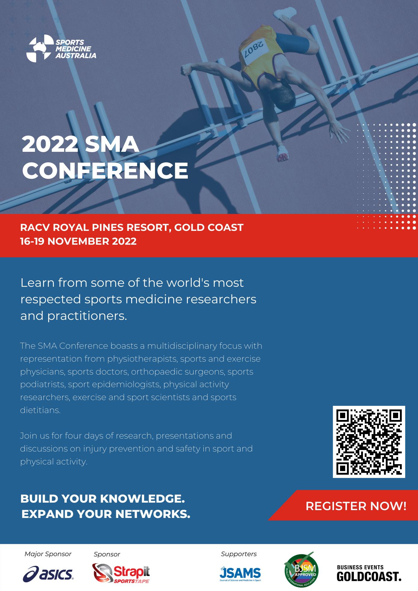 Here at Sports Medicine Australia, we are in the final stages of preparation for the 2022 SMA Conference at RACV Royal Pines Resort on the beautiful Gold Coast, Queensland. We welcome some of the finest minds in Sports Medicine to the conference this year with keynote speakers such as Professor Dr Vincent Gouttebarge PhD, Professor Jill Cook PhD and Dr Phathokuhle Zondi MBChB alongside many others.