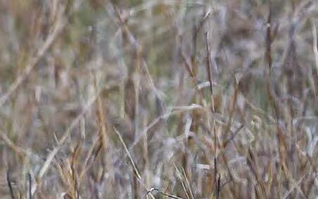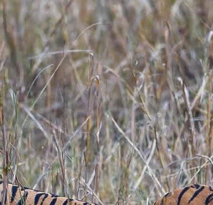 好,露 出了小花斑紋,就好像枯草 堆裡的兩朵花。