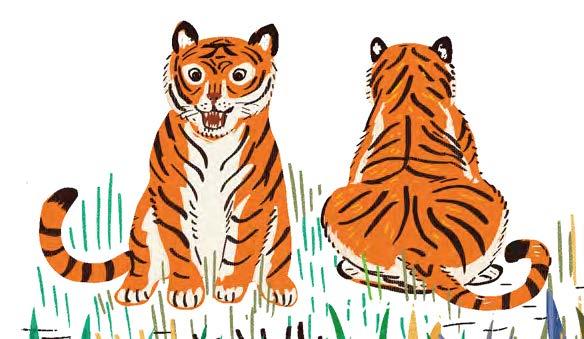 「這 …… 這不是小花,是老虎 花花!」小動物們嚇成 一 團,慌亂