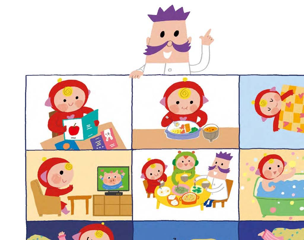 除了睡眠時間規劃表,Why 博士 還幫妮妮 和 豆豆安排了睡前儀 式,讓他們養成準時睡覺的好習 慣。