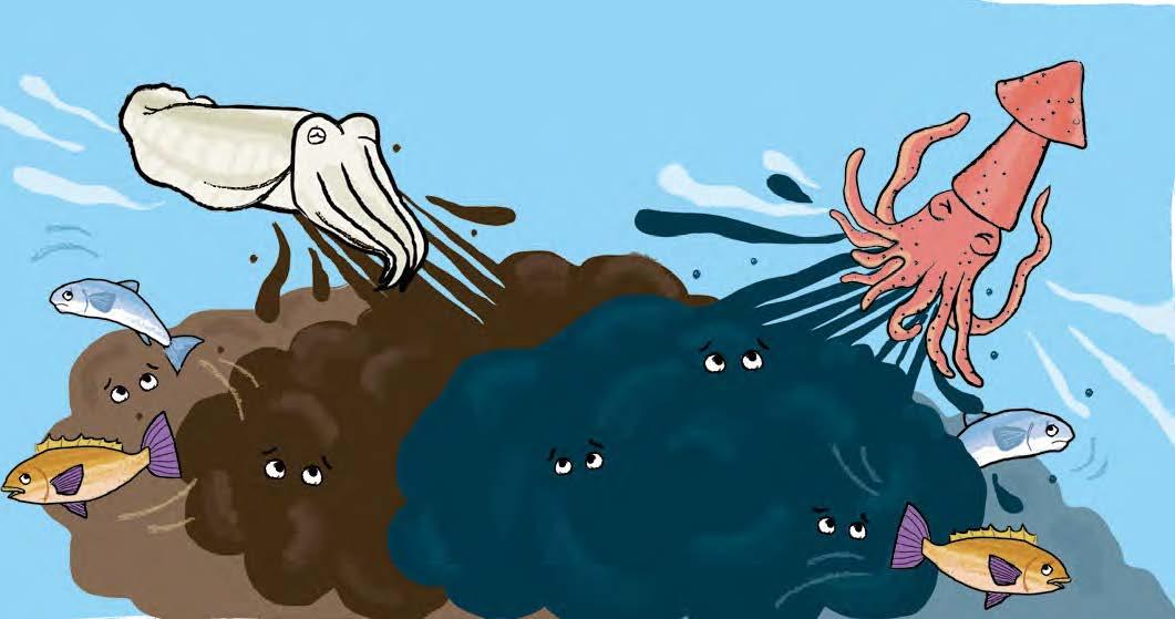 魷魚喜歡在水中游 泳,有時游太快還 會衝出海面。