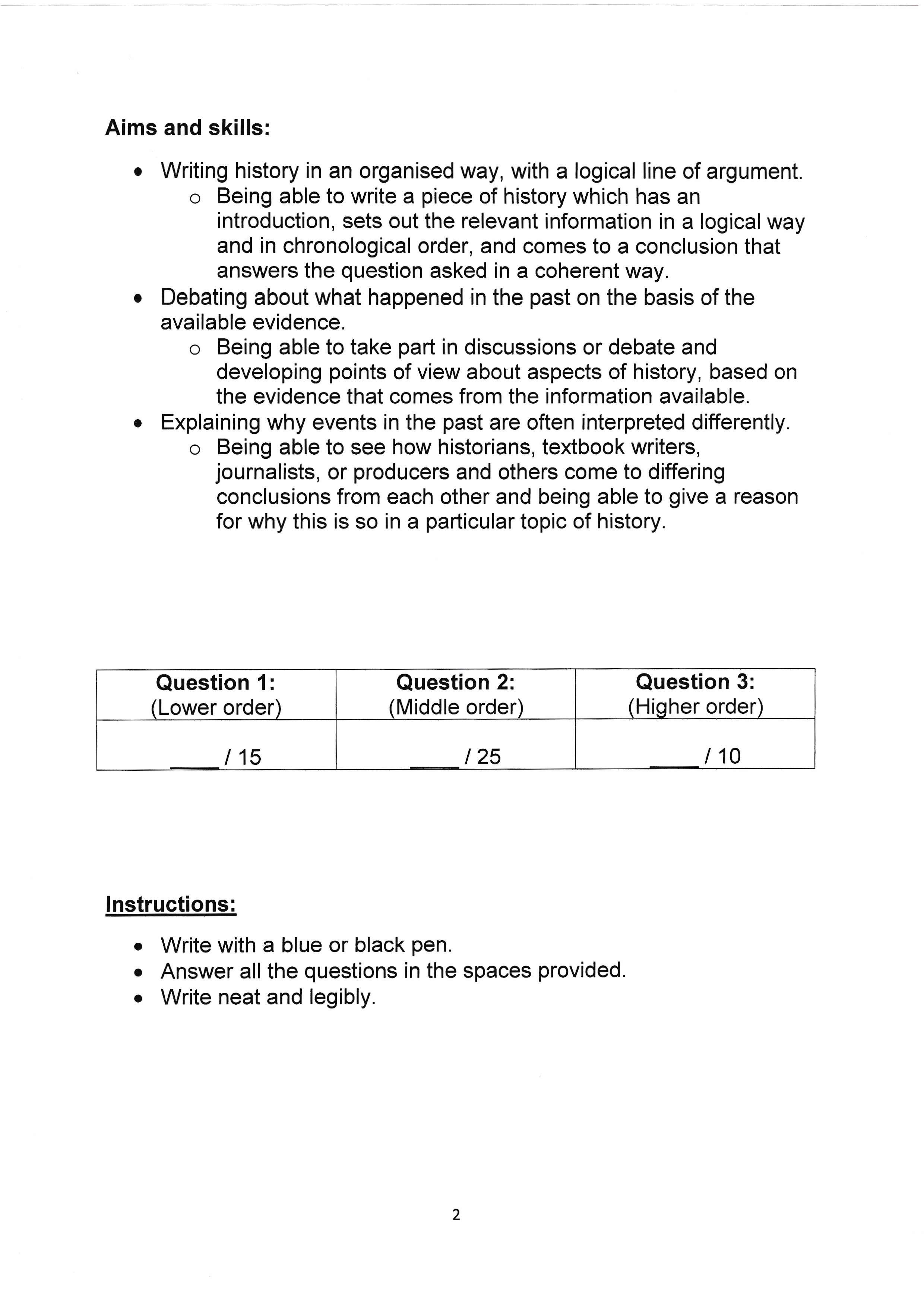 o Being able to write a piece of history which has an introduction, sets out the relevant information in a logical way and in chronological order, and comes to a conclusion that answers the question asked in a coherent way.