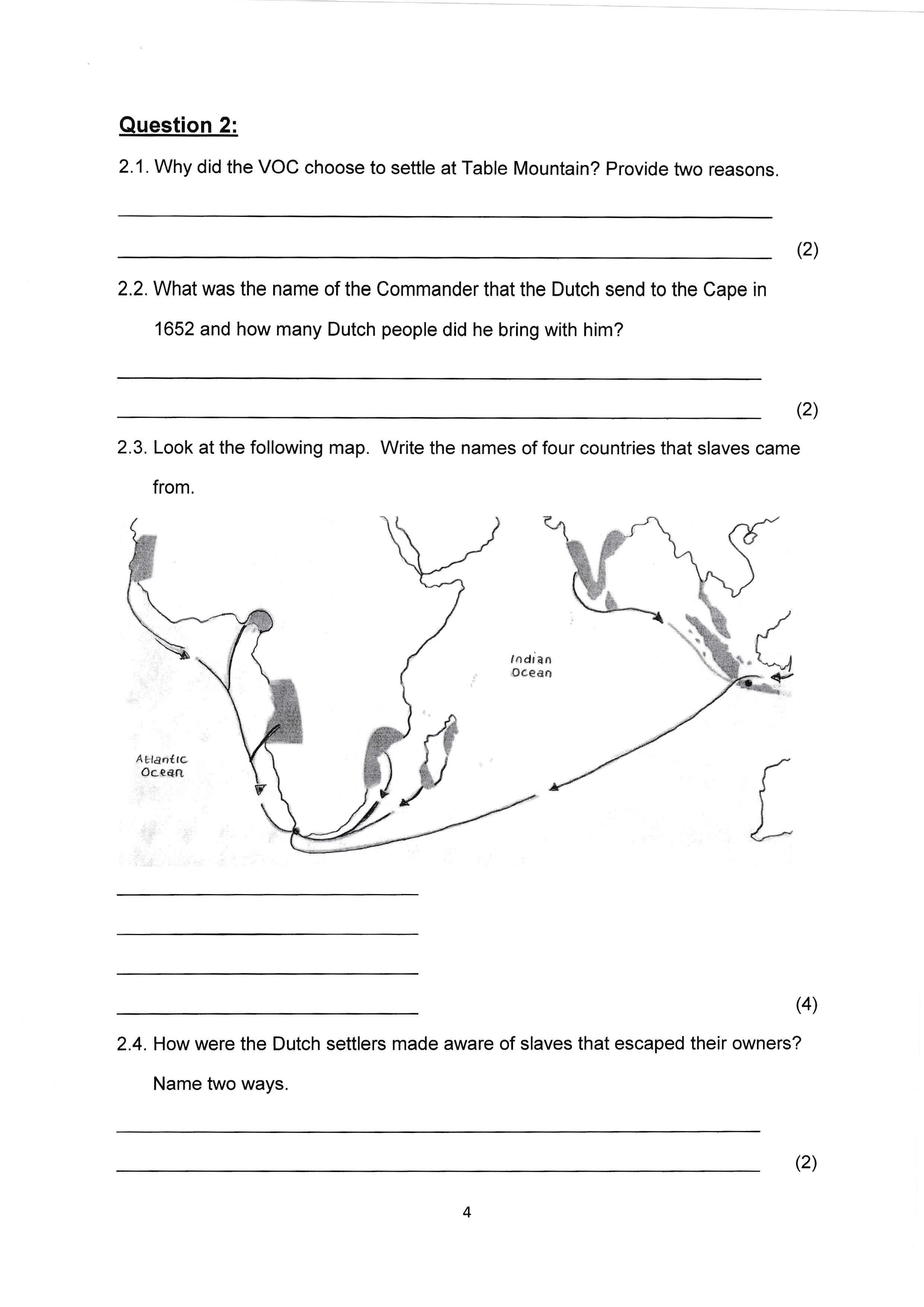 2.3. Look at the following map. Write the names of four countries that slaves came from. (2) (4)