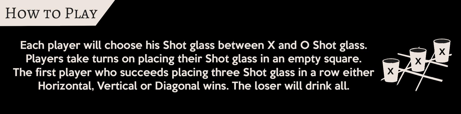 Set up cups on a board Players toss balls at the cups Thefirstplayertogetthreeballsinarowwins.Thelosing playerdrinkstheremainingshots.