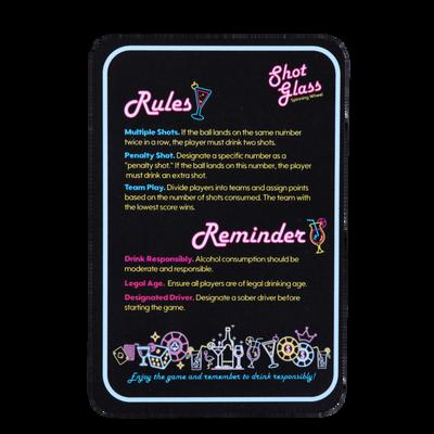 Spinawheelanddrinkfromtheshotglassthattheballlandson.It'sa greatwaytoaddexcitementtoyourpartiesorgatherings!