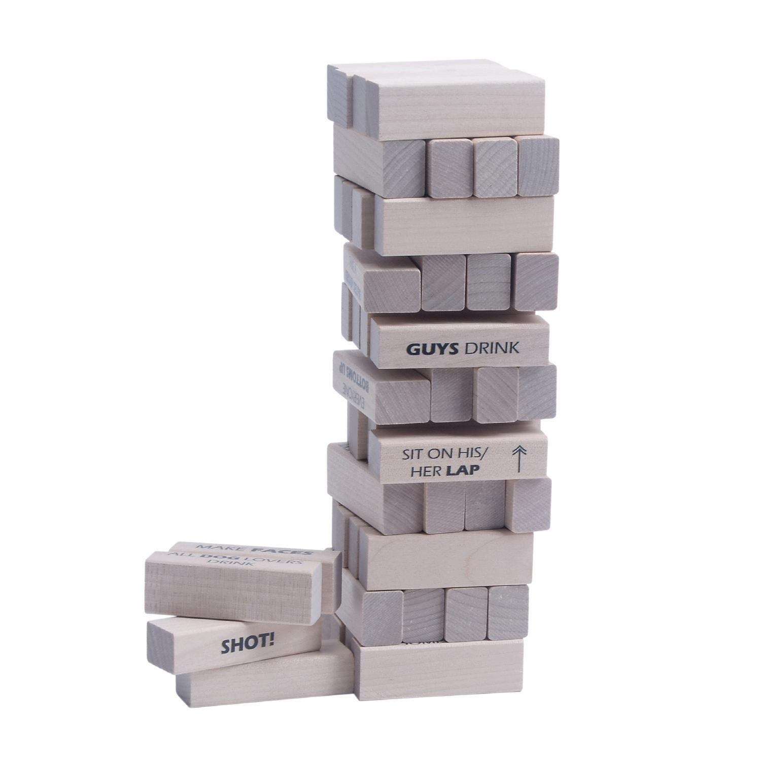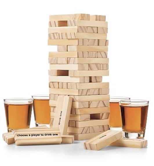 An exciting group drinking game among friends using tower blocks and a drink of your choice.