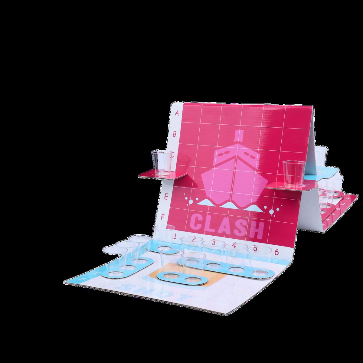 Hide ships on a grid. Take turns guessing coordinates. If you hit a ship, the other player drinks. Three misses in a row means you drink a super shot. The first player to sink all ships wins. Thelosingplayerdrinkstheremainingships