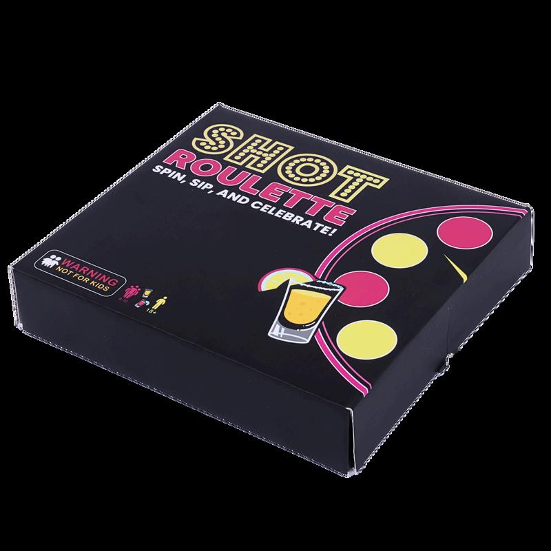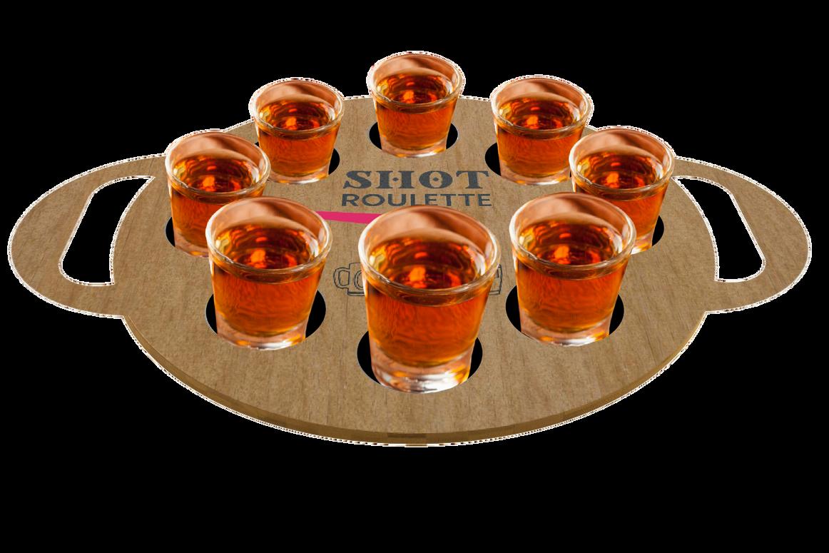 ShotRouletteisafunandexcitinggamewhereplayersspins thearrowandtakeashotfromtheglassthatitlandson.It's perfectforaddingatwisttoyourparties!