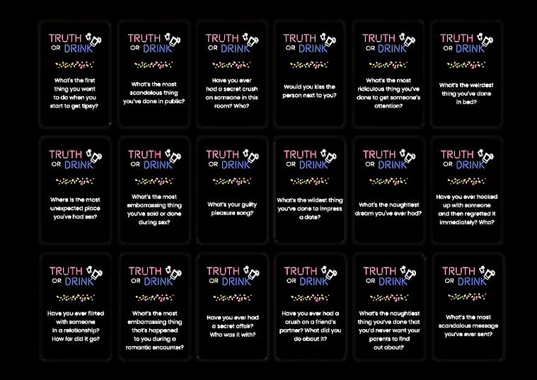 Saythetruthordrink,afuncardgamewithchallenges, dares,andtriviathatwillkeepyoudrinkingallnight!Itsa greatwaytoaddexcitementtoyourpartiesorgatherings!