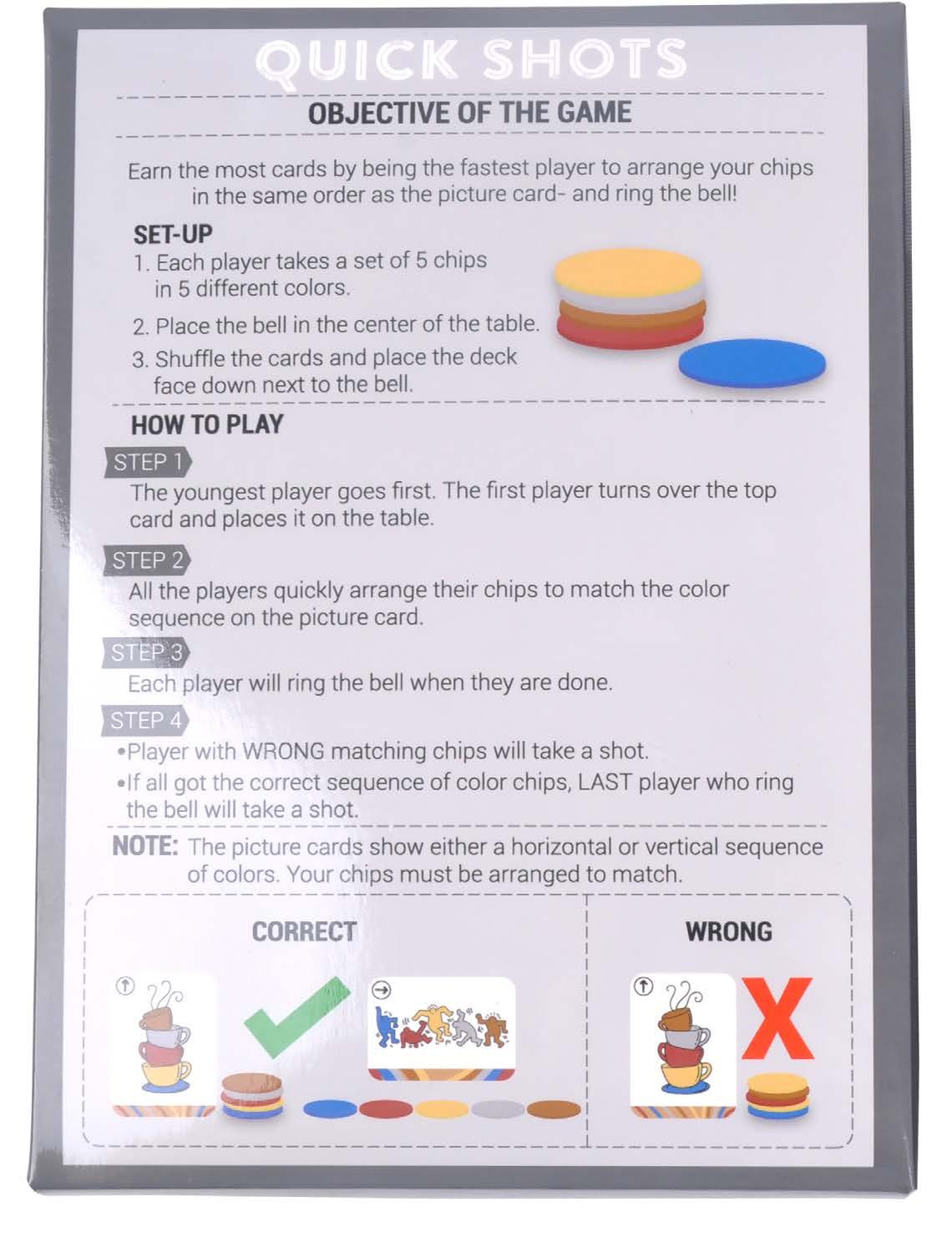 MechanicsoftheGame: This exciting card game features a deck of cards filled with hilarious activities, daring actions, trivia questions, and more. Draw a card and complete the task, or take a drink! Its the perfectwaytospiceupyourpartiesandgatherings.