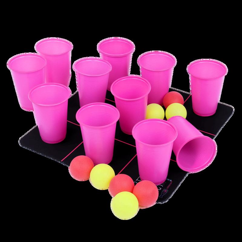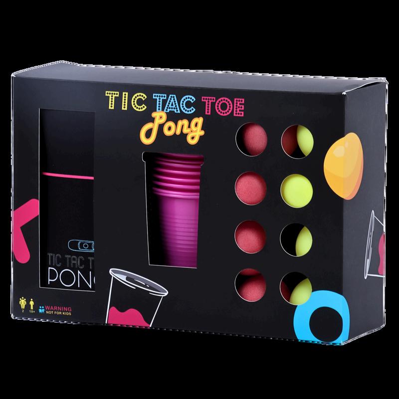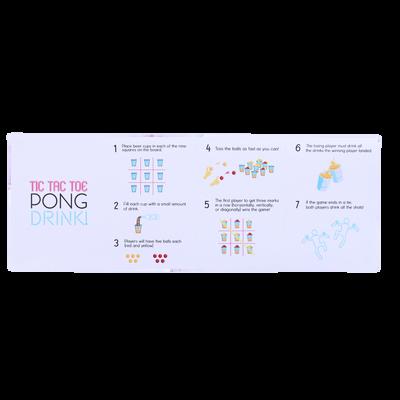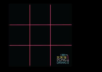 TicTacToePongisafungamewhereplayersthrowping pongballsatcups.Thefirsttogetthreeinarowwins,and theloserdrinks. 1 game board 12 Plastic glass 10 Ping pong balls