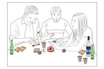 Get ready for a thrilling game of skill and strategy! Set up twoboardsandtossbeercapsatthem.Score3pointsfor a hole-in-one and complete a task for landing on the board. The first team to reach a set score wins! Let the beercapbattlebegin!