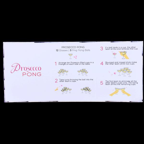 ProseccoPongisafundrinkinggamewhereteamstryto eliminateeachotherscupsbythrowingaball.Thefirst teamtofinishwins!