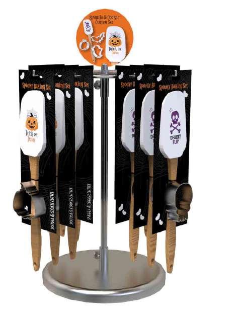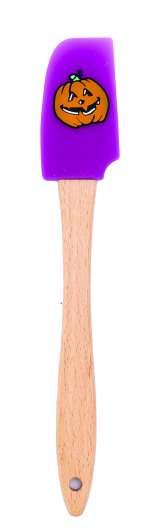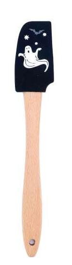 This Halloween set includes a durable silicone spatula with a wooden handle and metal cookie cutters in festive shapes, perfect for creating spooky treats with ease and style
