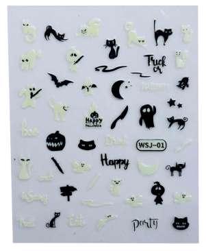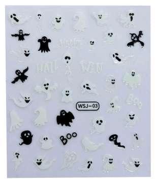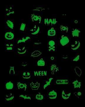 These spooky glow-in-the-dark nail stickers add a festive touch, perfect for completing the Halloween look