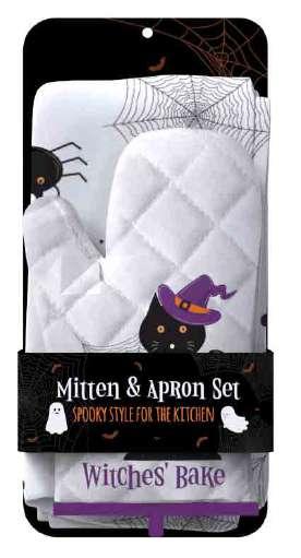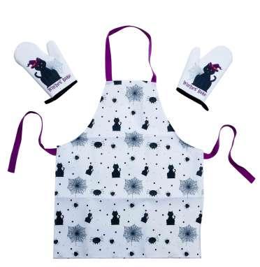 This Halloween-themed set includes a fun, festive apron made from fabric and a thick, durable mitten, perfect for cooking or baking in spooky style while staying safe and comfortable