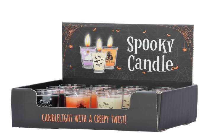 These spooky candle in a shot glass adds a festive touch to the decor while creating a spooky ambiance for the celebrations