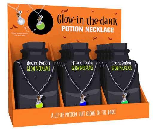 This spooky glow-in-the-dark potion bottle necklace adds a magical touch, perfect for enhancing Halloween look