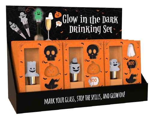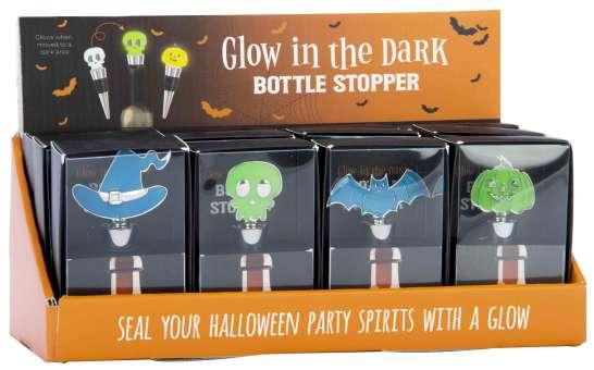 These Halloween bottle stoppers, made of metal and resin, glows in the dark, adding a magical touch to your spooky celebrations starts to