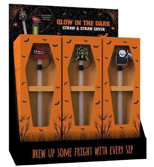 This eerie glow-in-the-dark straw and cover set adds a bewitching charm, making every sip a spellbinding Halloween delight!