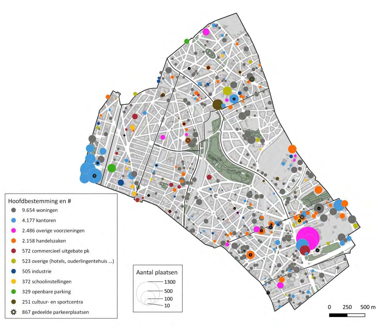 Figuur 4: Spreiding van de parkeerplaatsen op de openbare weg op het Schaarbeekse grondgebied –Tellingen Parking.brussels 2020