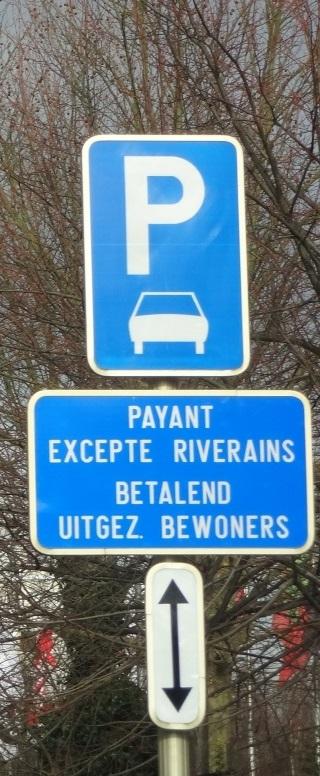 Zone waar het parkeren onderhevig is aan een bepaalde reglementering: gratis blauwe zone of betalende zone.