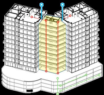 arquitectura del edificio se stingue por sus dos volúmenes incipales, desempeñando un papel ndamental en la integración de ementos estructurales adicionales, mo los puntos fijos que aseguran estabilidad.