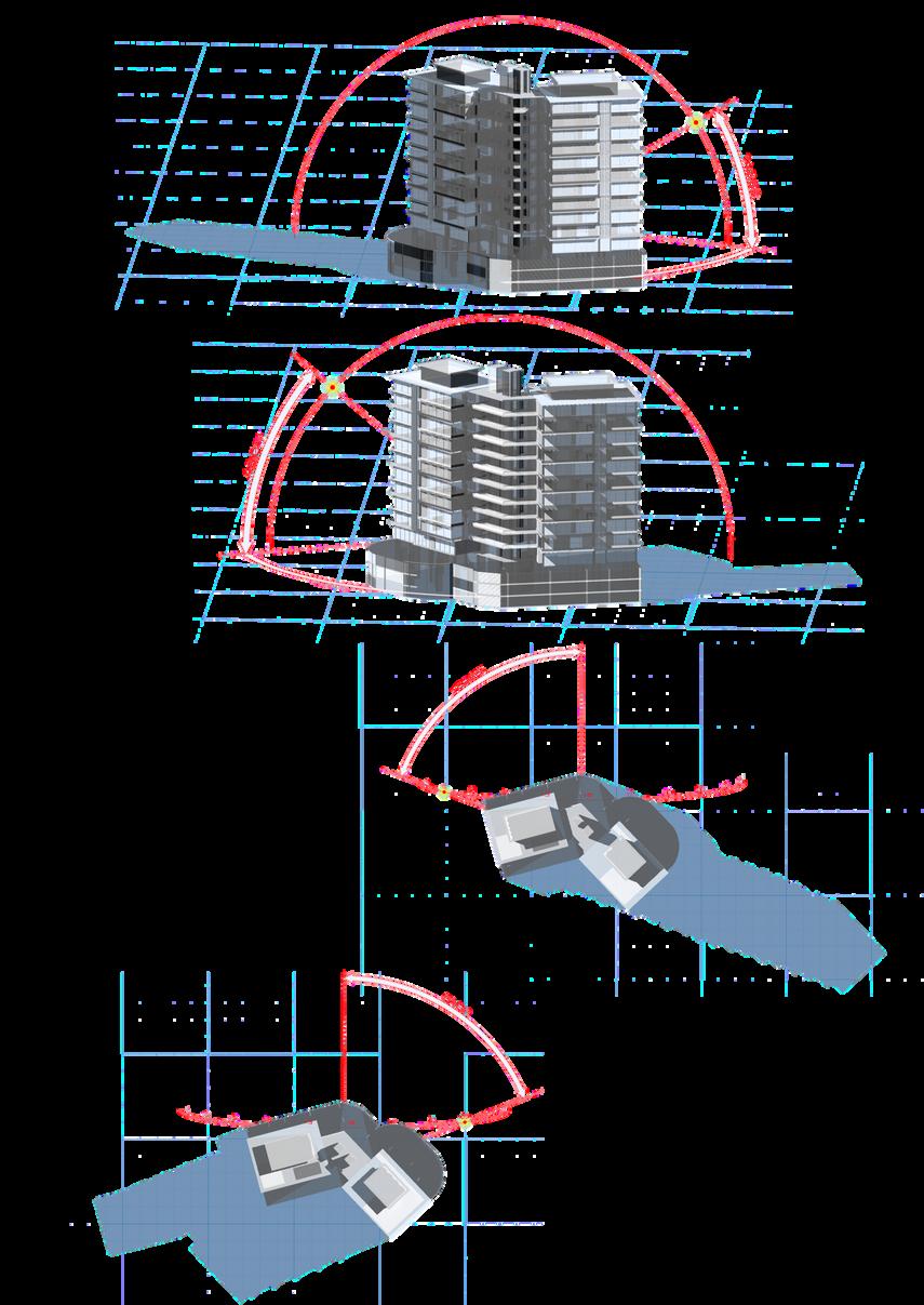 El ángulo de giro de 120 grados entre las torres permite visuales de 360 grados de la ciudad, proporcionando fluidez, dinamismo y confort a los espacios. Esta disposición asegura que las habitaciones tengan vistas variadas, enriqueciendo la experiencia visual del proyecto