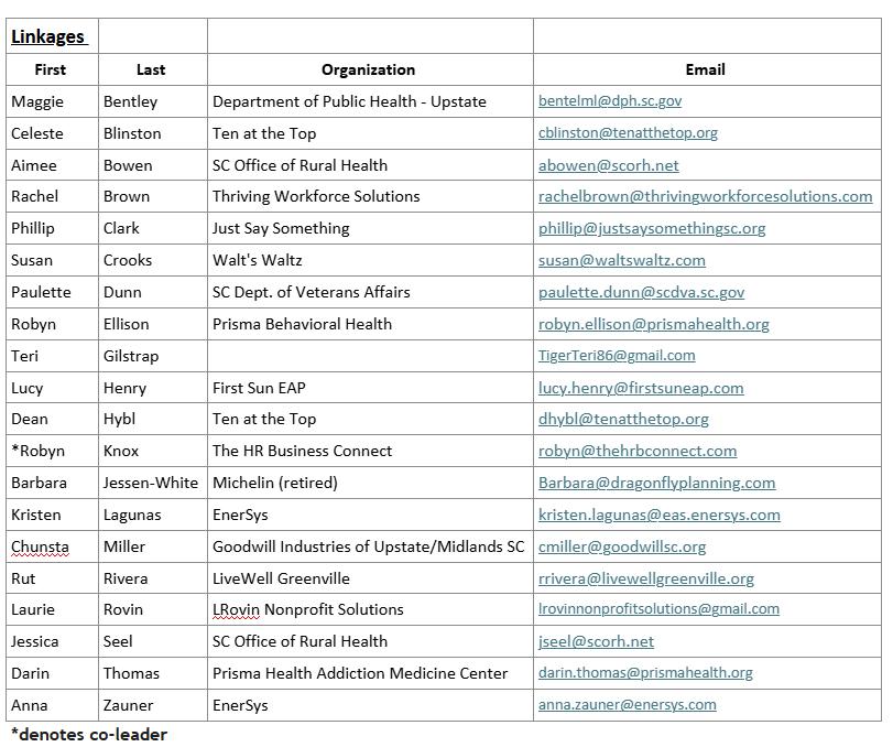 The Business Linkages Task Force has worked to ensure that Upstate employers can easily access tools and resources to support employee mental well-being. The first outcome of this effort is this Workplace Toolkit, designed to help employers build a healthier, more resilient workforce. We hope you will find it useful in your efforts to support the mental well-being of your employees.