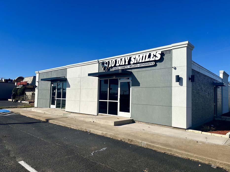 Storefront view of 10 Day Smiles Arlington dental office — a modern dental clinic offering cosmetic, restorative and emergency dentistry from a trusted Arlington dentist.