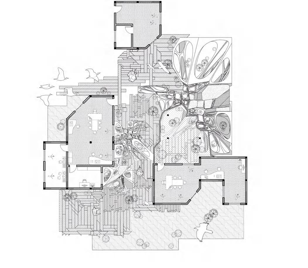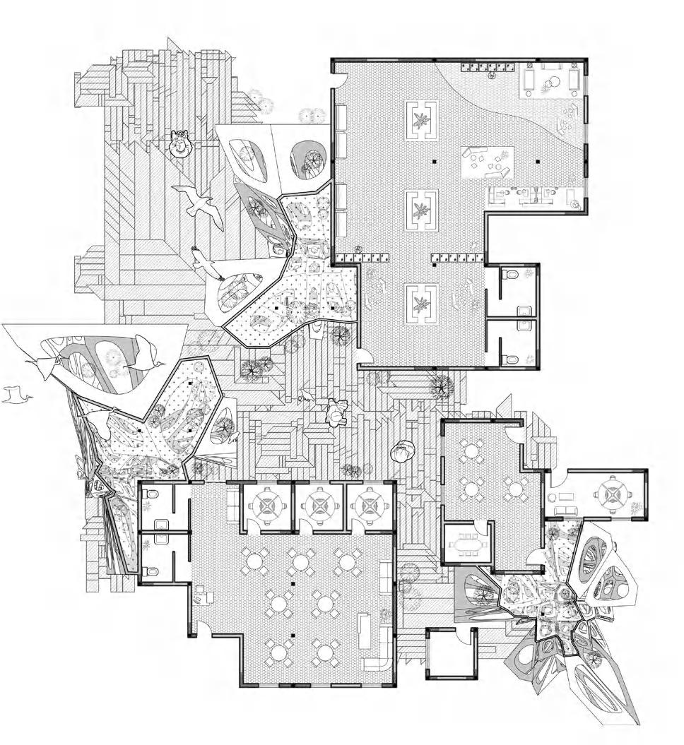 Located in Manhattan, New York, where there are many high-rise buildings and birds hitting glass with a high frequency of accidents, this phenomenon was mitigated by designing a space where people and birds coexist.