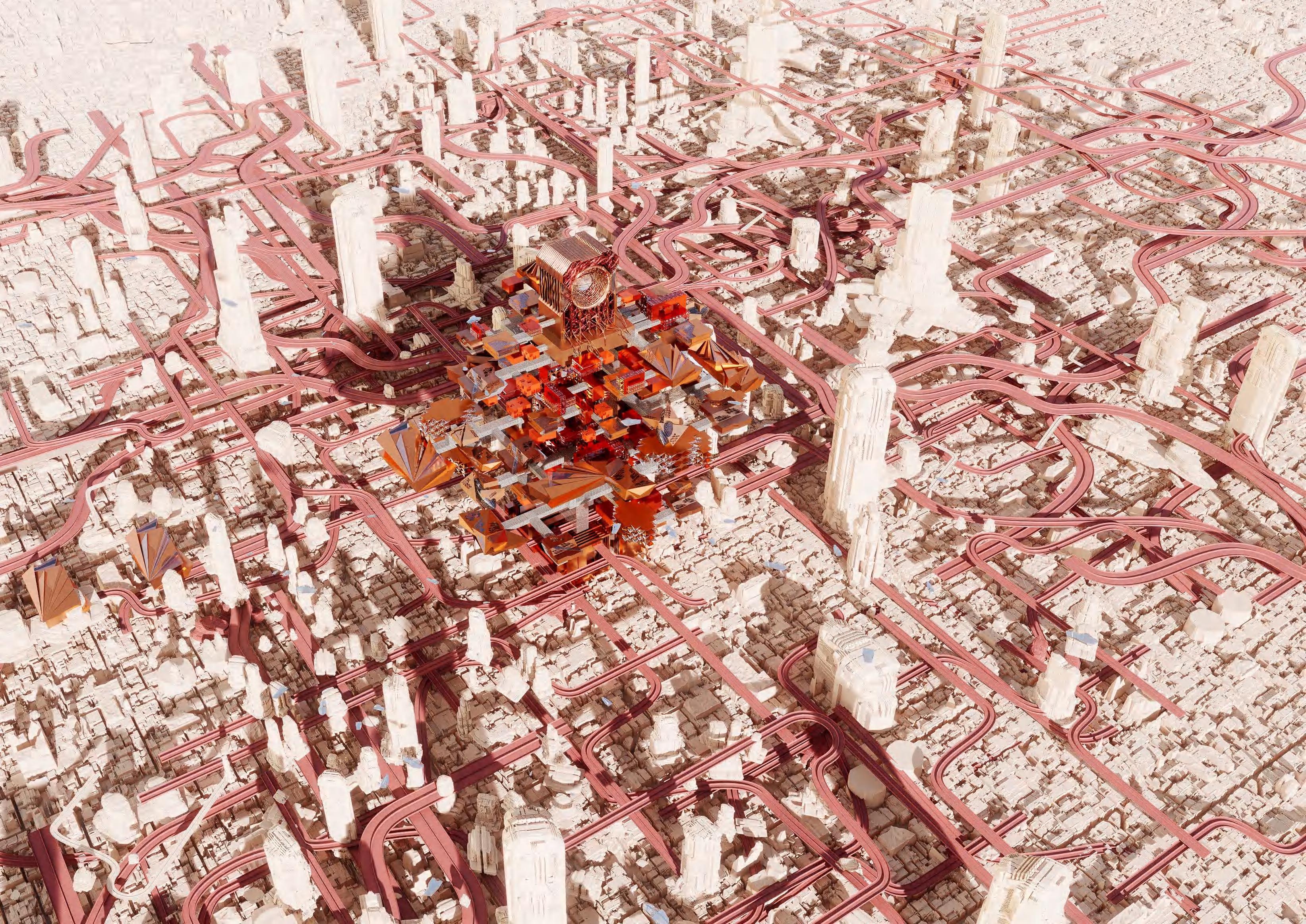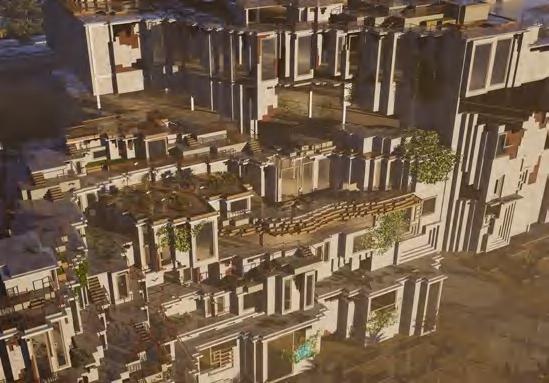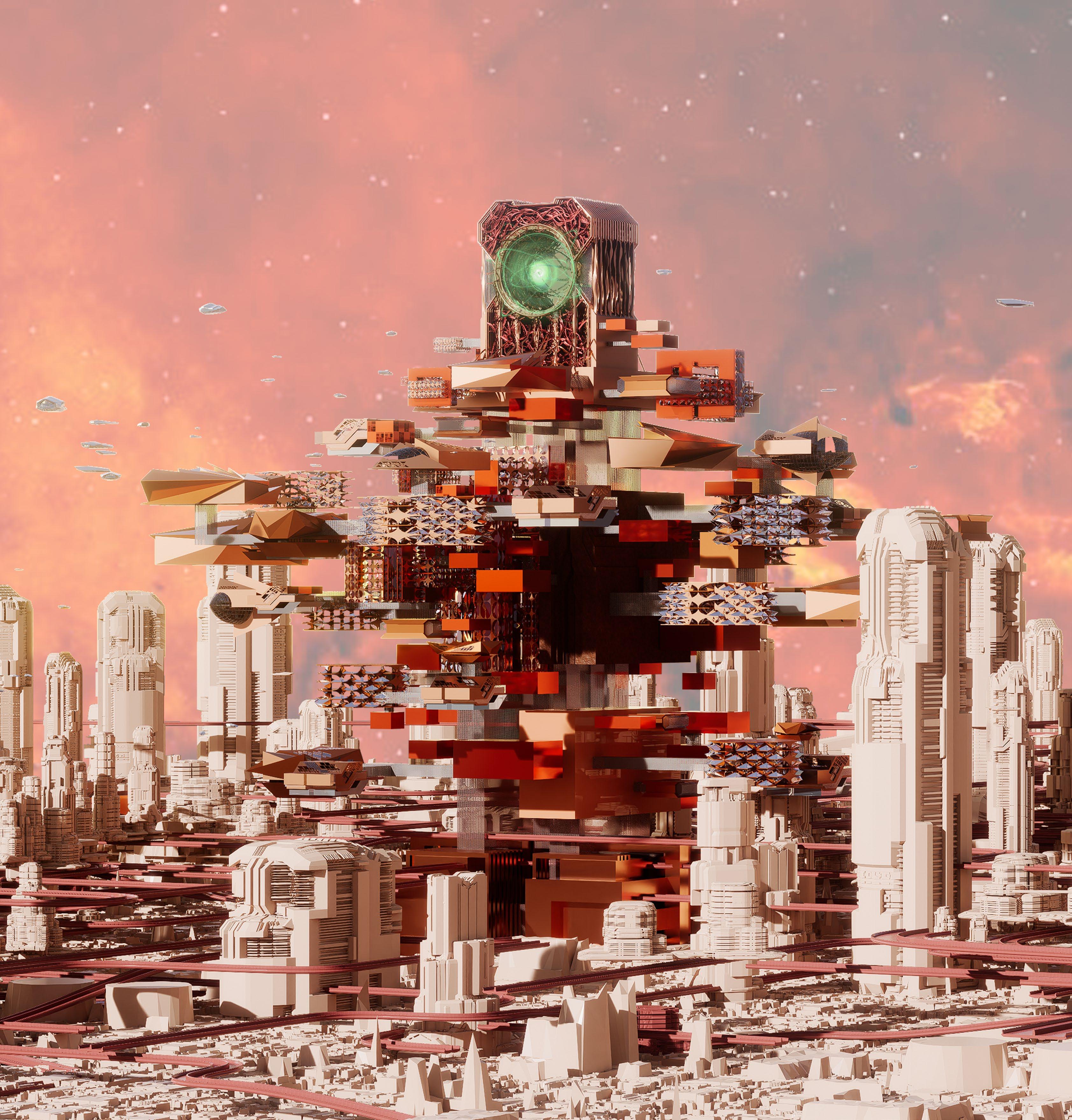 The design direction of this project is to focus on the interaction between people and buildings, assuming that the background is to rebuild the city after the war, and to establish an integrated technological building in the heart of the city. The scale of construction of this building is infinite, and each citizen has their own different construction tasks, and they will continue to build and expand the scale of the building. Set up a number of gameplay features (e.g., levels, equipment) to stimulate the engagement and interest of each citizen. At the same time, a game mechanic related to the construction time is set up to reflect the interaction between citizens (players) and buildings. The player's different interaction choices affect the construction of the building, that is, the production of different forms of block buildings, so the shape of the entire building is constantly changing due to the different construction choices of the players.