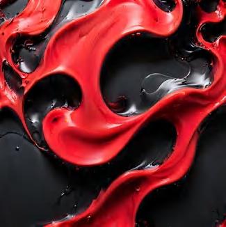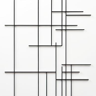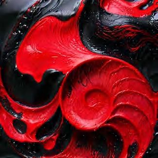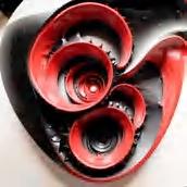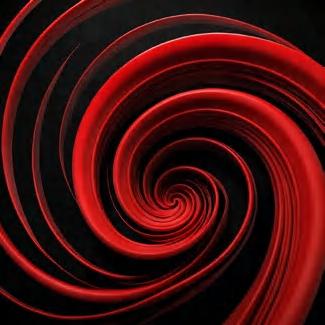 Line, whirlpool-like black and red threads of varying thickness, Fibonacci