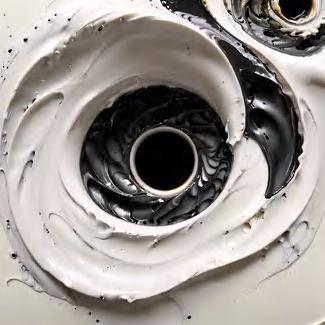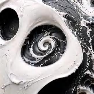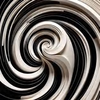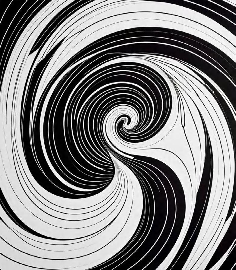 by ChatGPT: Elegant abstract design, swirling and spiraling black and white lines, dynamic and flowing curves, intricate spiral structures,