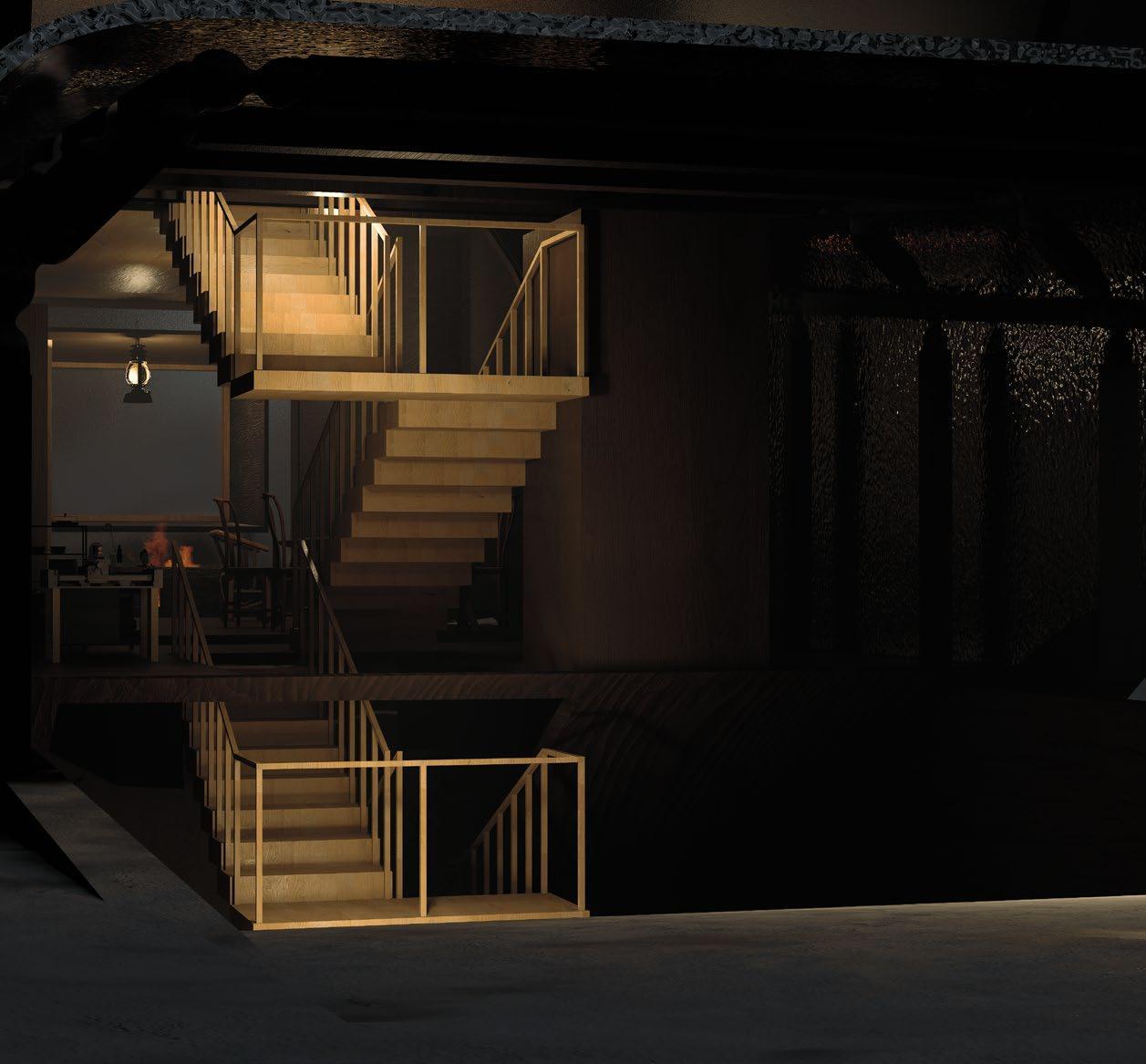 The road passes through the base of the "tree", so that the design tries to connect the building and the road as much as possible, and the road spreads out as a "tree root".