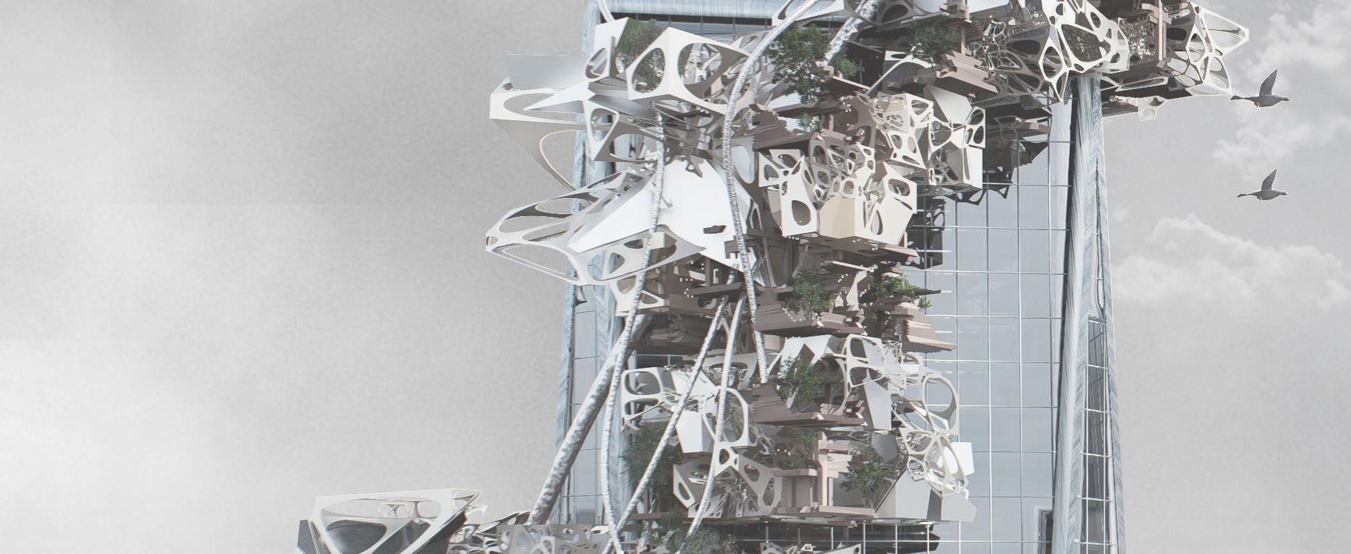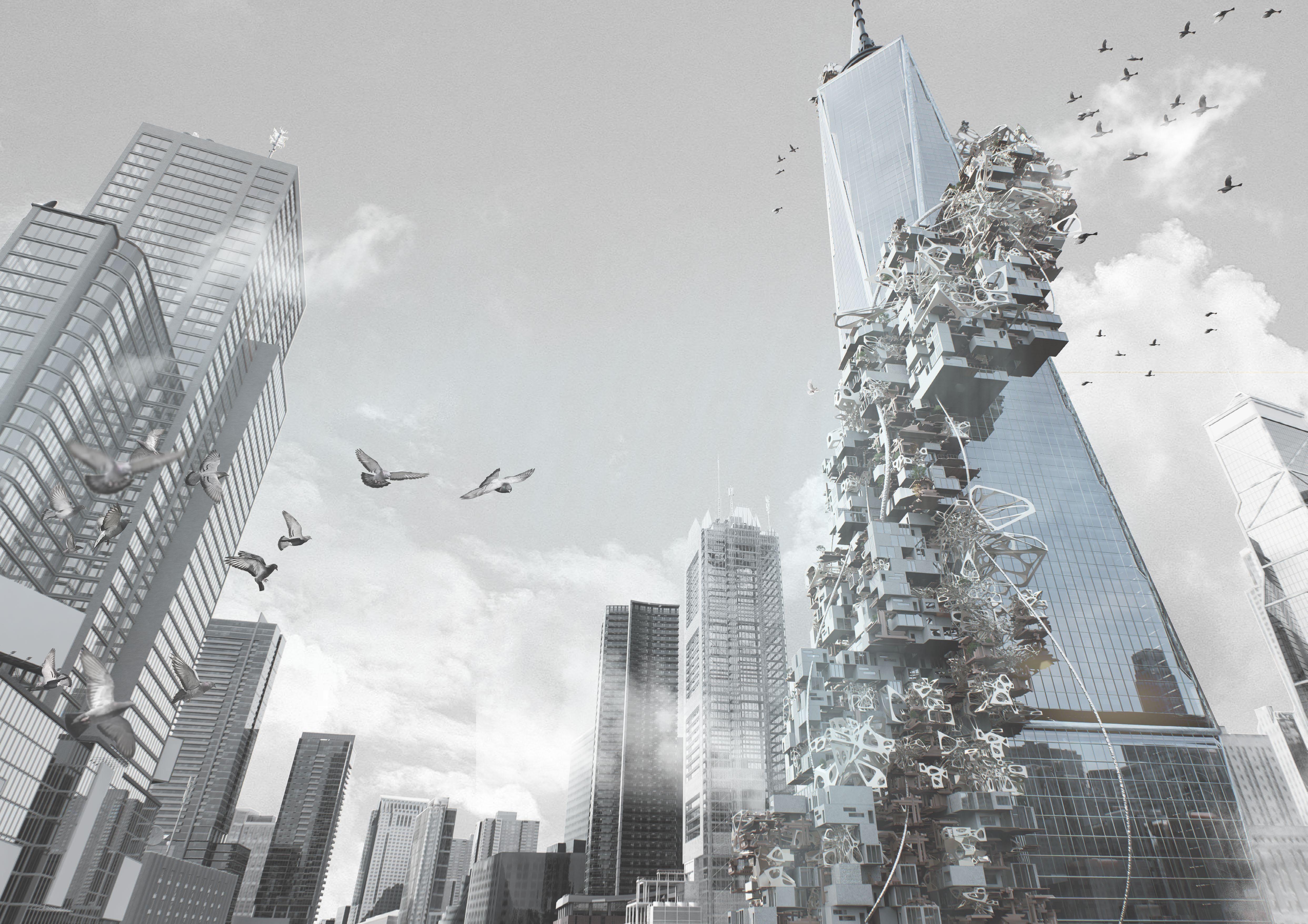 In response to the alarming number of bird collisions in New York City, this project envisions a high-rise habitat integrated into the World Trade Center. The design integrates six interconnected systems: an infrastructure system addressing threats to birds, an avian habitat system, a human habitat system, a symbiosis platform, a transportation network, and vertical landscaping.