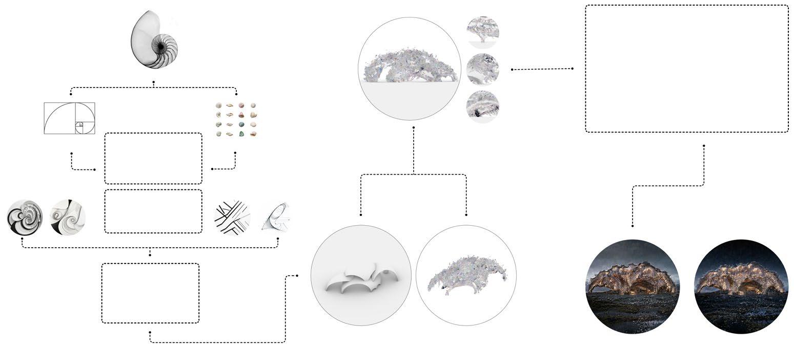 The spiral thread conforms to the Fibonacci sequence and is one of the rare beautiful proportions in nature. want to extract the lines of the spiral thread, reshape them with AI, and eventually apply them to architecture.