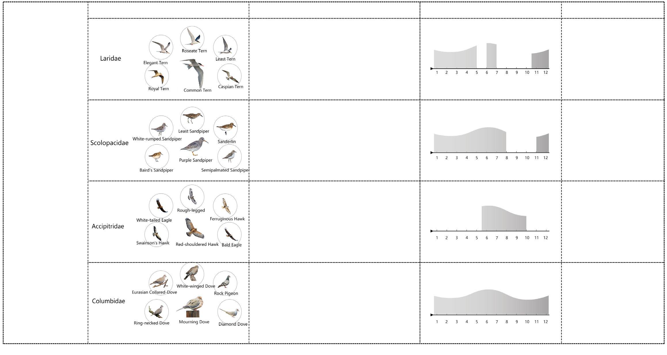 There are many birds in the United States, and the frequency of migration varies from bird to bird.