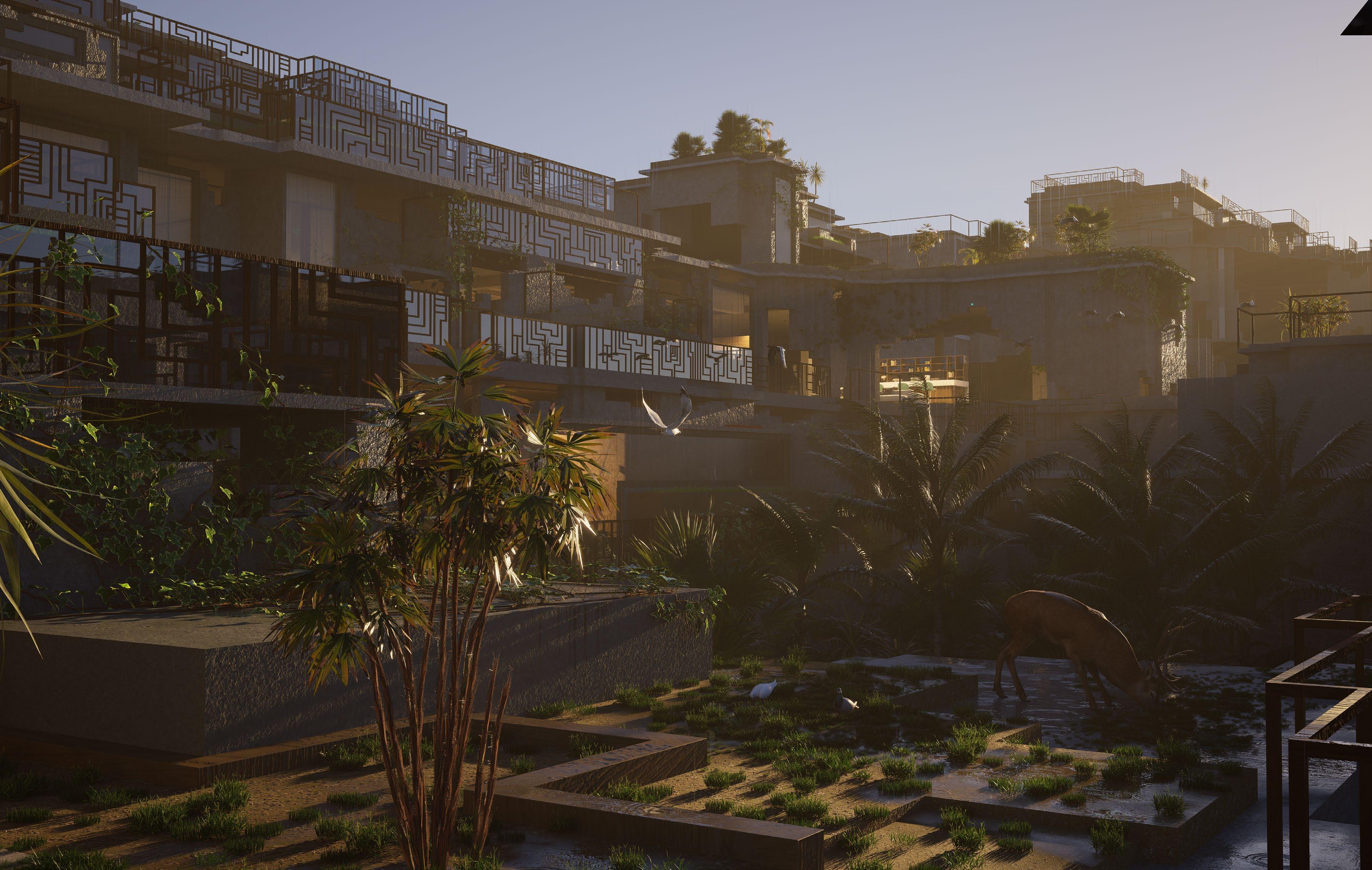 The Vital Enclave represents an innovative architectural concept of harmonious coexistence between humanity and nature. It is meticulously crafted using unique biological materials that originate from nature and blend seamlessly with the surrounding environment, making the building seem like an inherent part of nature.