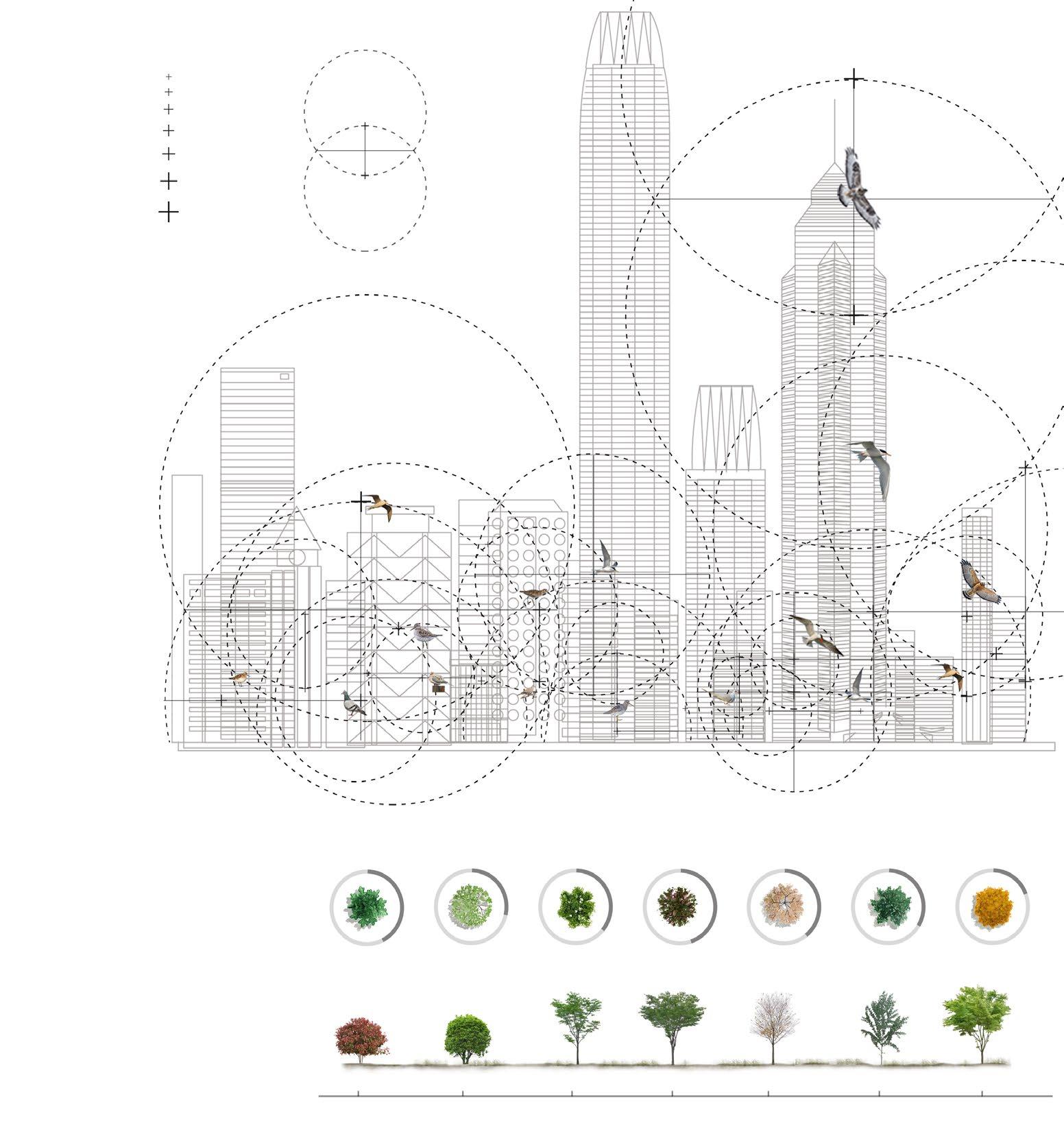 Inspired by the nesting behaviors of birds at different heights and within various tree species, the project employs 3D point cloud modeling to study tree typologies and create tailored habitats for diverse bird species. These data-driven designs provide functional nesting and resting spaces while harmonizing with human-centric areas such as research laboratories, offices, and residential units. By fostering coexistence between humans and birds, the project redefines high-rise architecture as a biodiverse ecosystem, bridging urban design and environmental stewardship in a densely built metropolis.