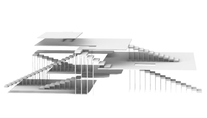 The various components of the building and the process of transforming the volumes of these parts are introduced. The facilities and transportation around the building are introduced. Some renderings of the perspective of people and airships are shown.