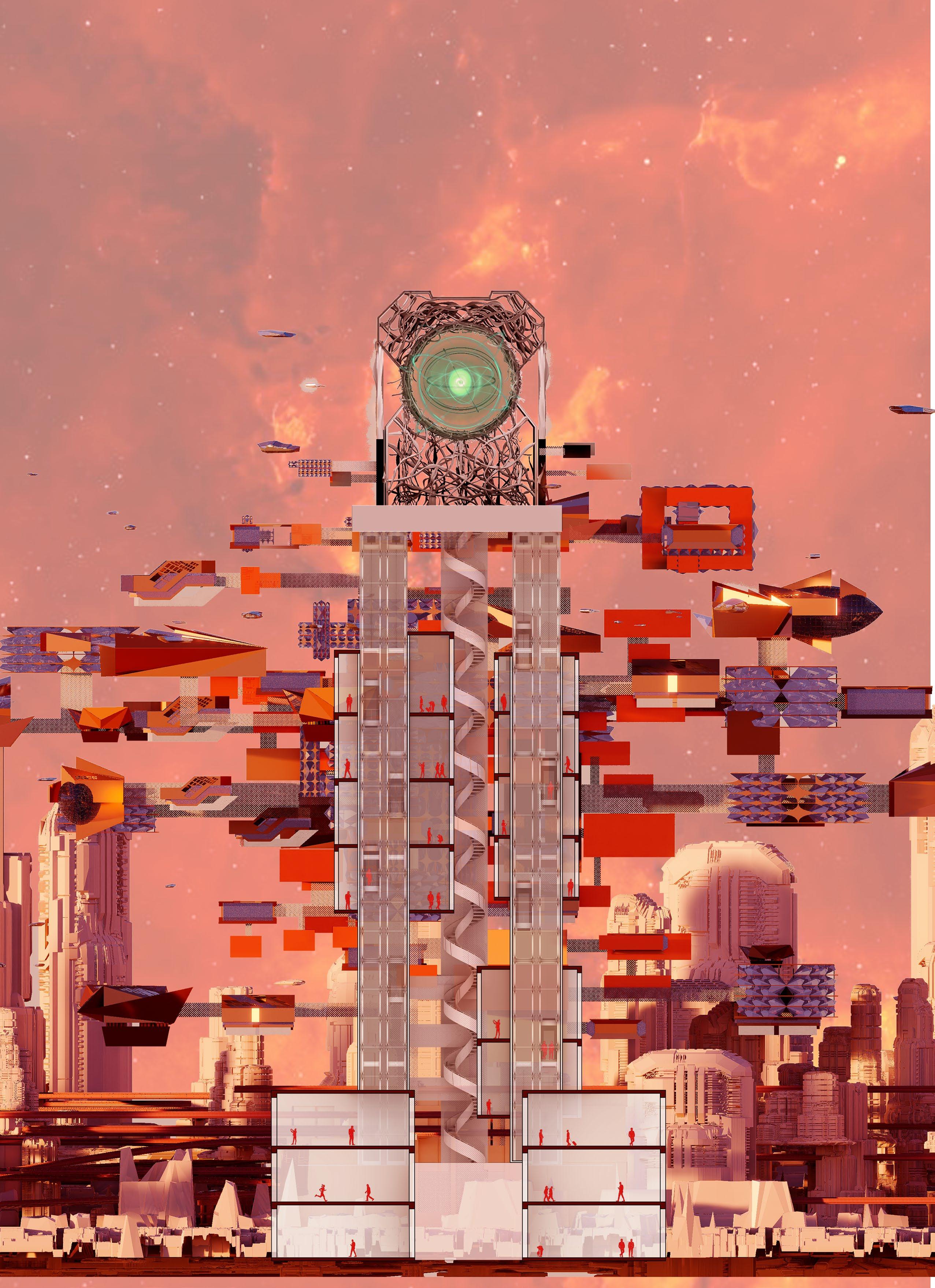 In response to the alarming number of bird collisions in New York City, this project envisions a high-rise habitat integrated into the World Trade Center. The design integrates six interconnected systems: an infrastructure system addressing threats to birds, an avian habitat system, a human habitat system, a symbiosis platform, a transportation network, and vertical landscaping.