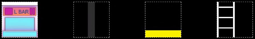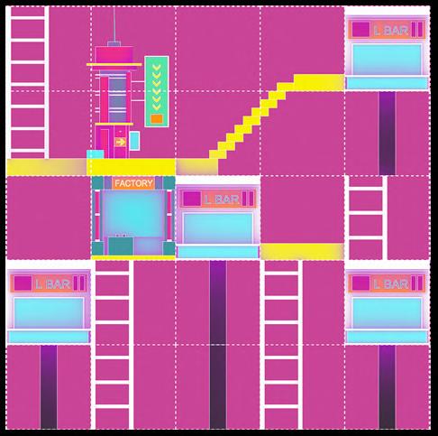 The space is automatically filled with a digitally developed wavefunction collapse algorithm and labelled ‘+’ or ‘-’ (one side of a voxel with a ‘+’ sign can be connected to another voxel on the same axis with a ‘+’ sign). 11 units of the main functional categories have been set up, some of which have modular variations in size (basic module: 1x1x1 metre). These units are evenly distributed in the set space and are connected to a number of paths and platforms.
