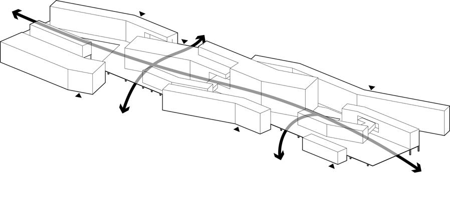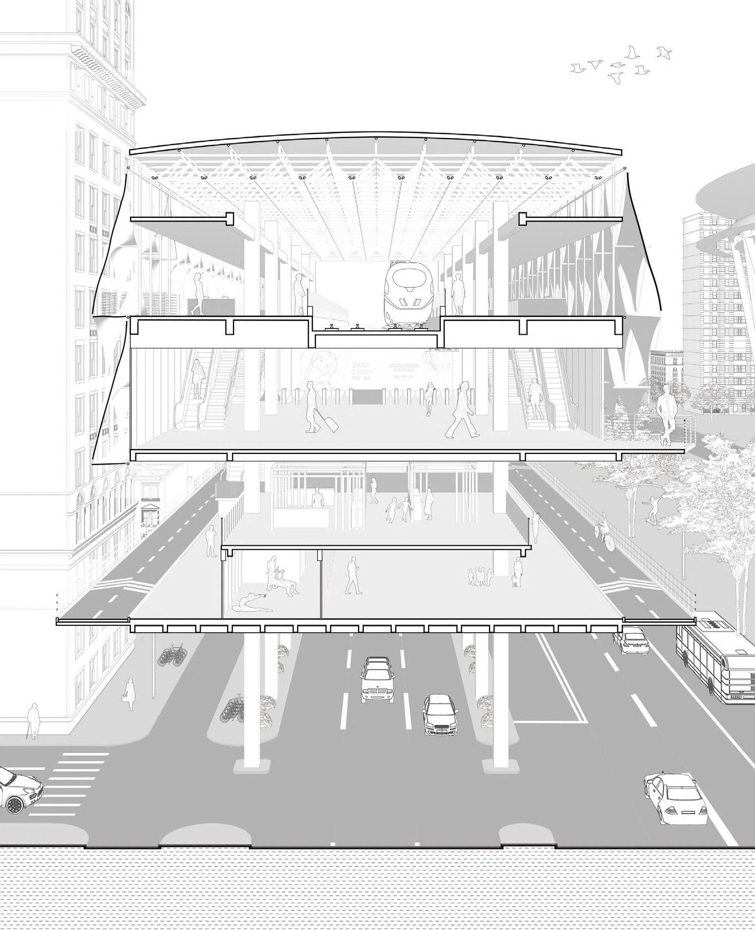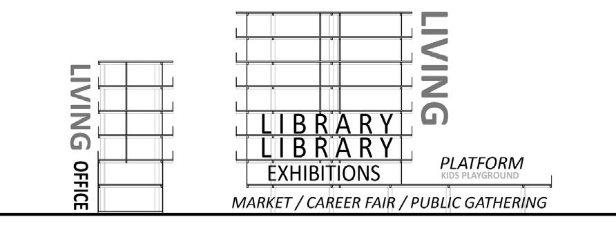 Plans: 1.Shaped platforms extend from the metro station to provide diverse spaces for people.